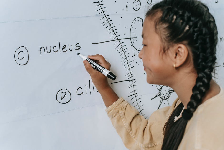 原始生物在白板上的亚洲青少年写作结构 · 免费素材图片