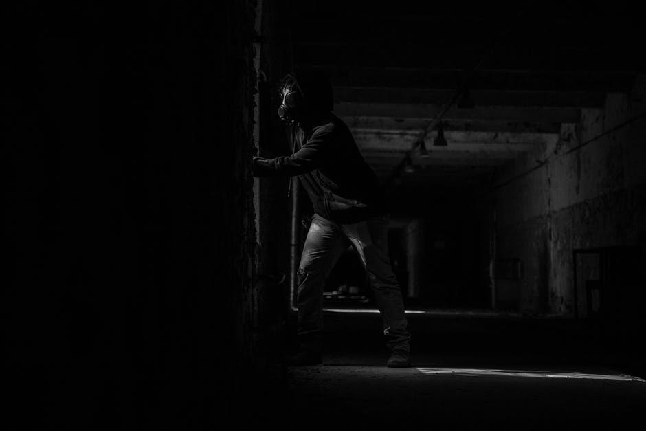 黑暗房间里的人戴着口罩 · 免费素材图片