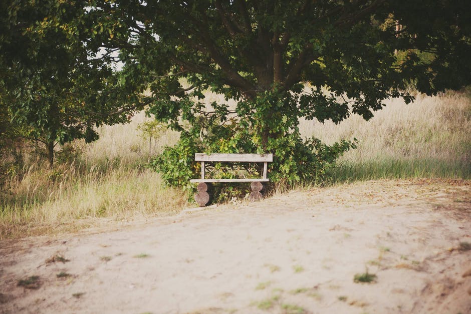 树旁的木凳上 · 免费素材图片