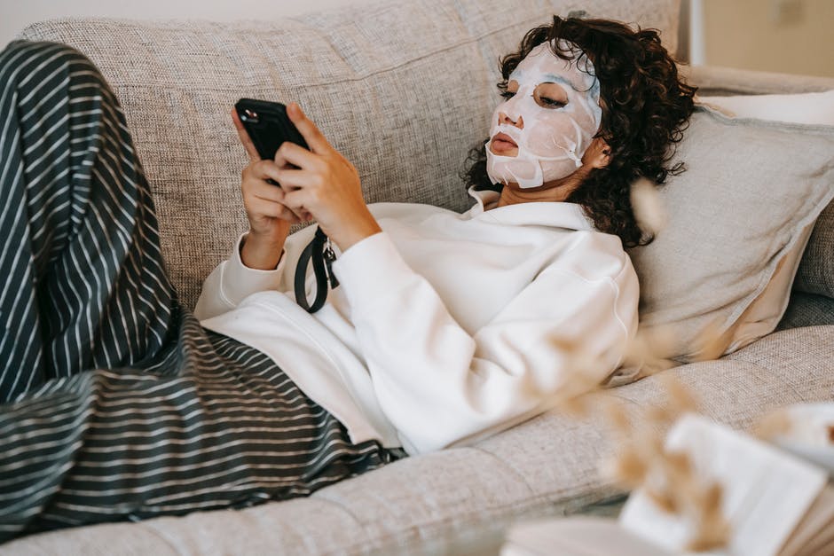 躺在床上,拿着黑色的智能手机的白色长袍的女人 · 免费素材图片