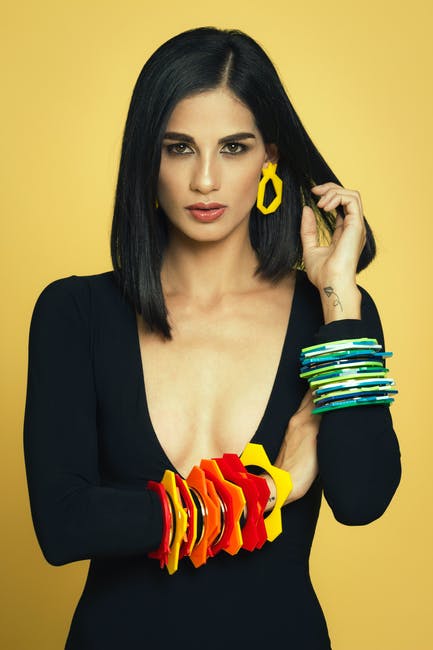 黑色暴跌的领口顶部抱着她的手臂的女人 · 免费素材图片