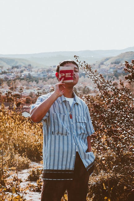 拿着红色和白色钱包的蓝顶的男人 · 免费素材图片