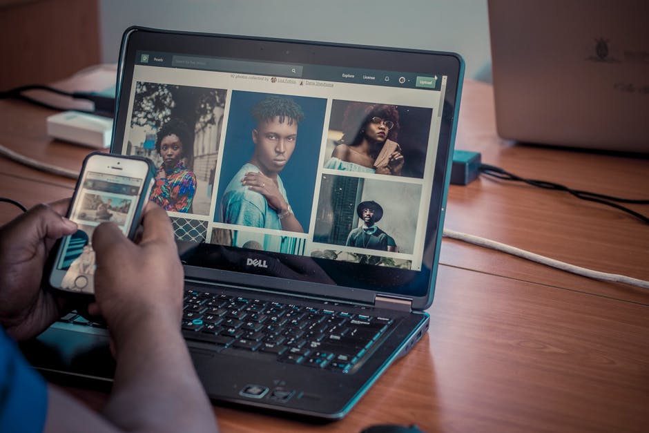 拿着白色iphone在灰色笔记本电脑前的人 · 免费素材图片
