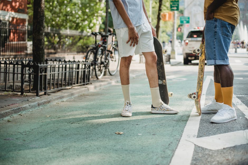 滑板后街上聊天的匿名时尚男性朋友 · 免费素材图片