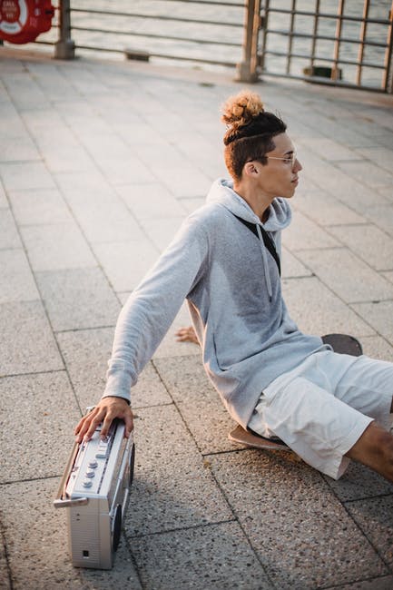 有种族的人坐在滑板上与复古录音机 · 免费素材图片