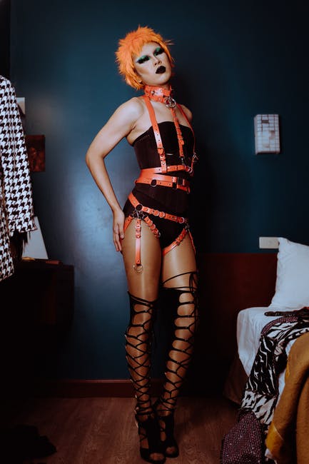 Bdsm服装站在黑暗的房间里的变性人 · 免费素材图片