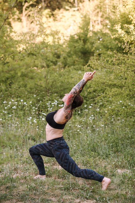 匿名的苗条的女人站在草地上的战士姿势 · 免费素材图片