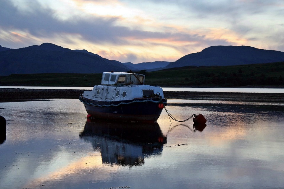 船 锚地 日落 - 上的免费照片