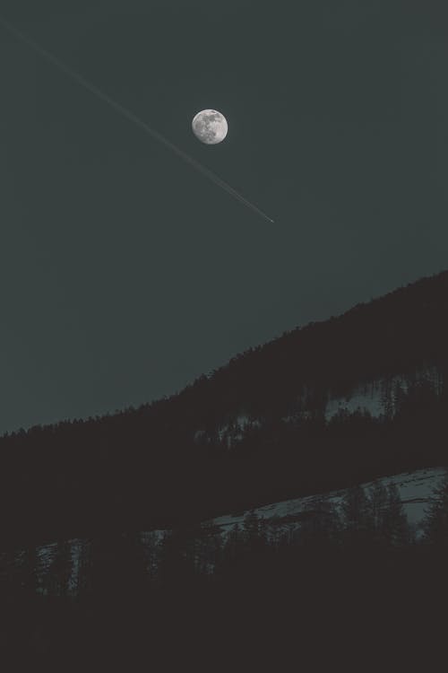 月下棕色山的风景摄影
