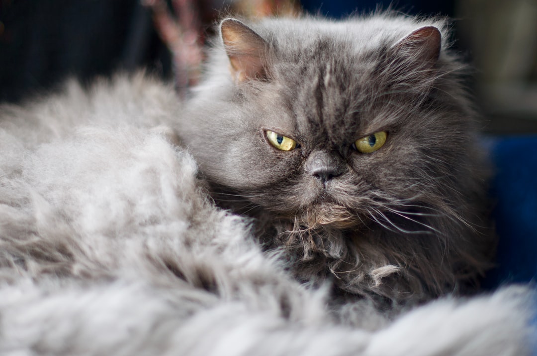 白色织物上的灰白色波斯猫