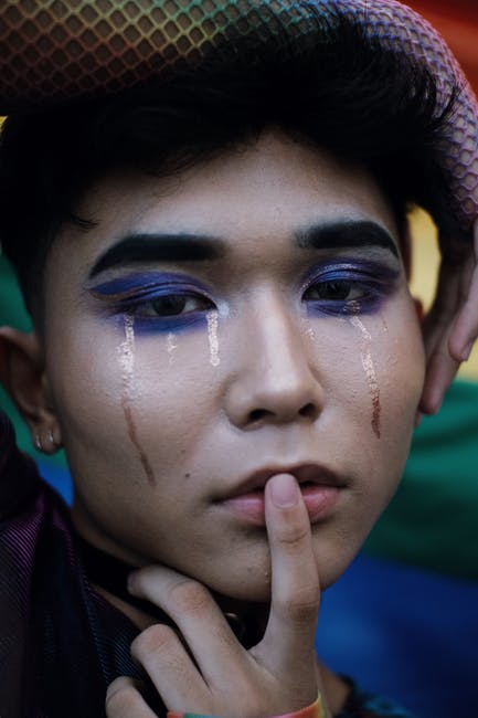 蓝色的眼影摸他的嘴唇在特写照片中的男人 · 免费素材图片