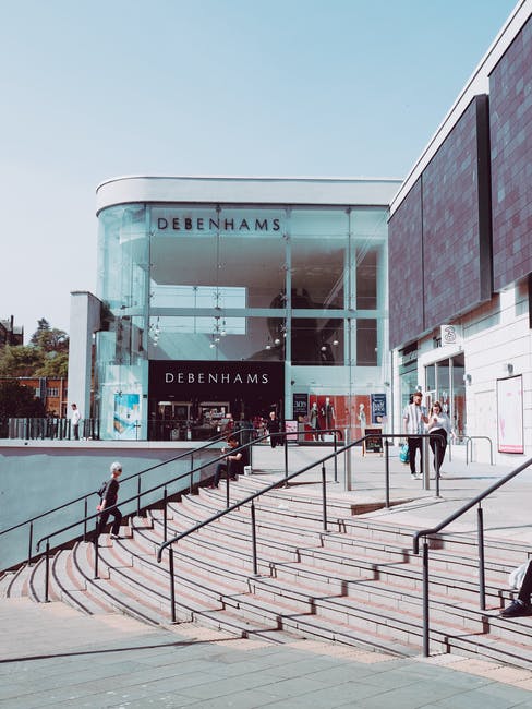 男人和女人走在商店和楼梯附近 · 免费素材图片