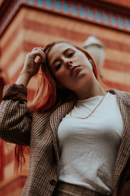 女人低头摆姿势的选择性焦点低角度照片 · 免费素材图片