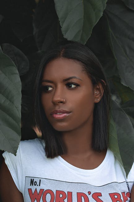在绿色的叶子的植物,看着别处包围时身穿白色t恤的女人的照片 · 免费素材图片
