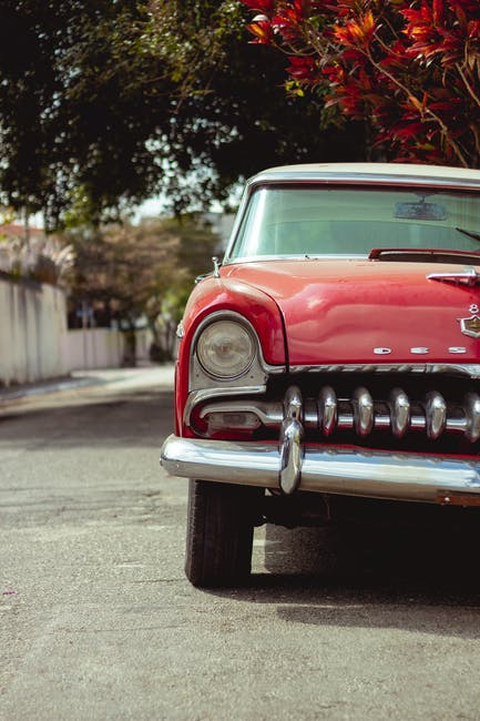 老式红色汽车停在街上 · 免费素材图片