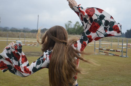 后视图照片黑盖头的女人独自走在土路上 · 免费素材图片