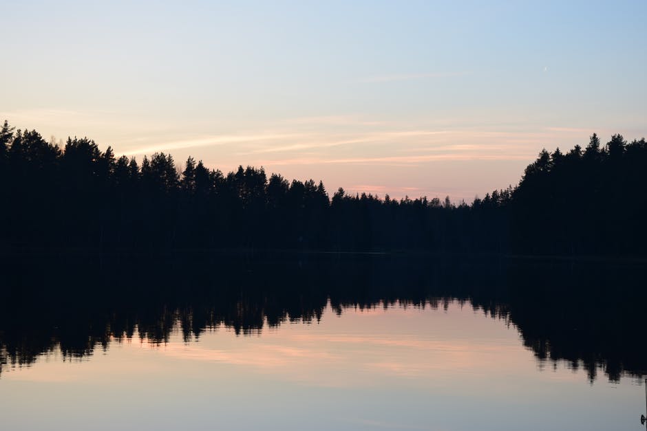 黄金时段树木在水体上的倒影 · 免费素材图片