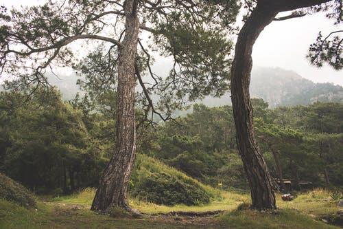 除了灰色的岩石峭壁,绿色和棕色的树 · 免费素材图片