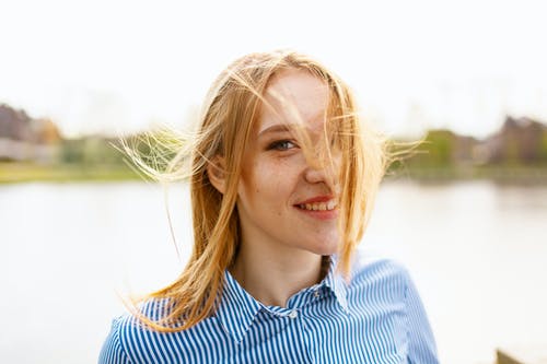 拿着杯子的微笑的妇女佩带的帽子 · 免费素材图片