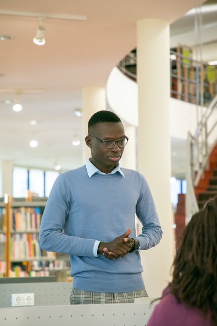 黑人学生站在图书馆的观众面前 · 免费素材图片