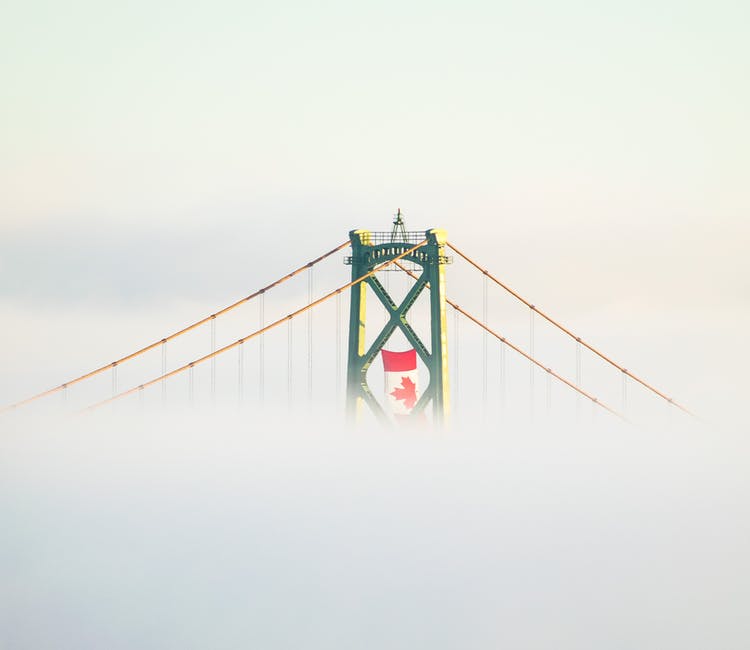 加拿大国旗悬在吊桥上方 · 免费素材图片