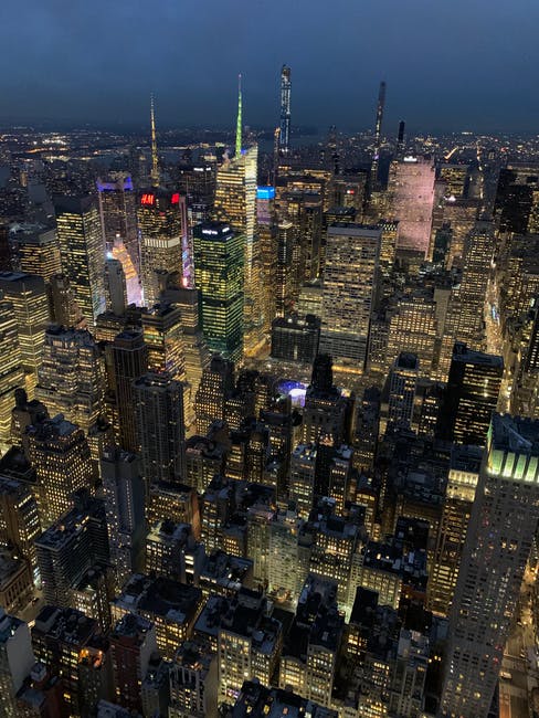 夜间城市建筑的鸟瞰图 · 免费素材图片