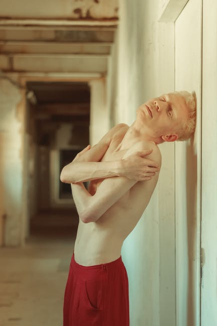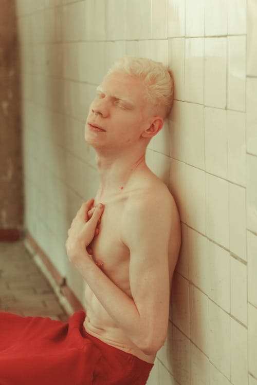 裸照穿着红色短裤倚在白墙上的男人 · 免费素材图片