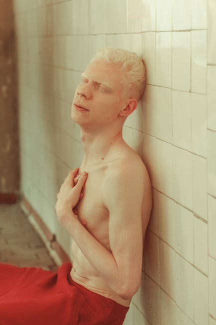 裸照人倚在瓷砖墙上 · 免费素材图片