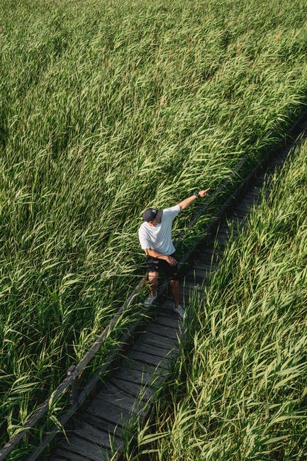 植物环绕的人行道上的一个人的高角度照片 · 免费素材图片