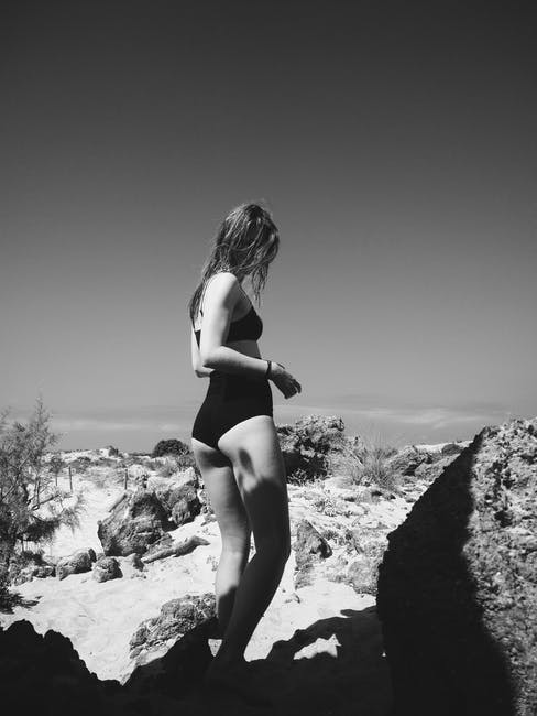 女人穿着比基尼的灰度摄影 · 免费素材图片