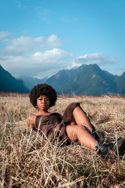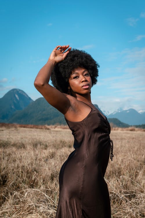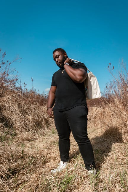 黑色的t恤和黑色的裤子,站在棕色的草地上的男人 · 免费素材图片
