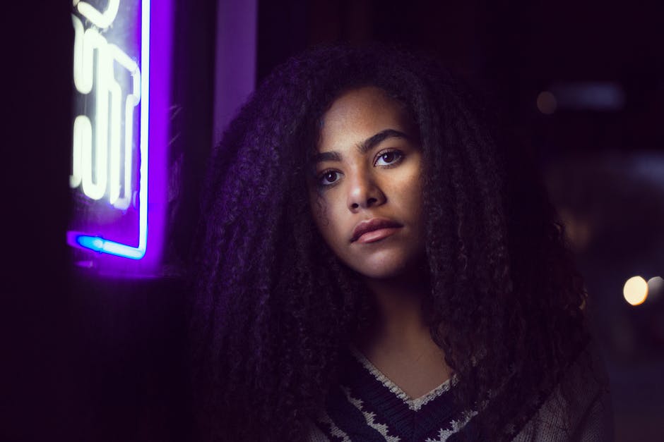 女人站在霓虹灯标牌附近 · 免费素材图片