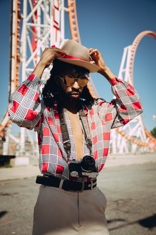 男士红色和灰色长袖衬衫 · 免费素材图片