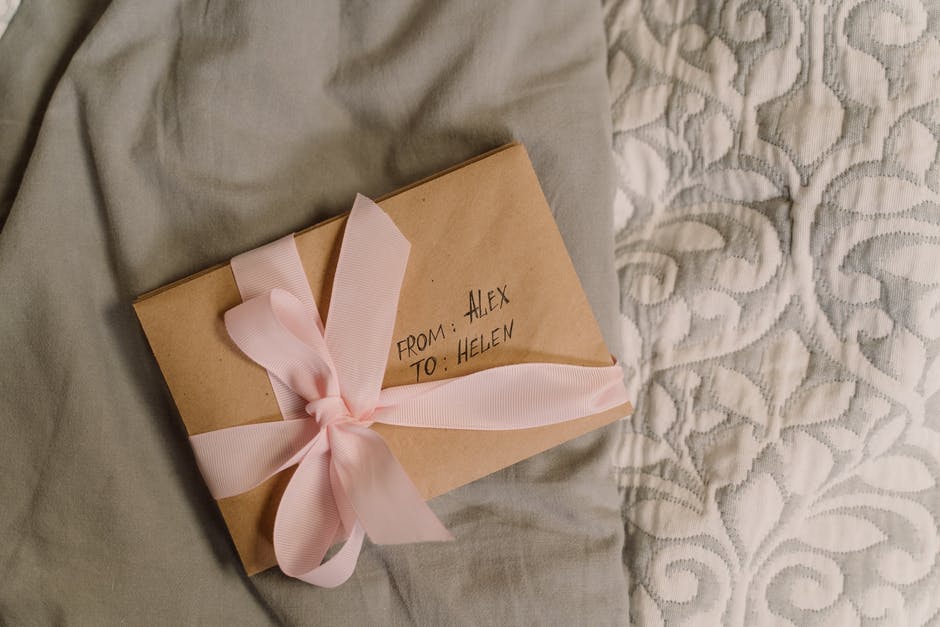 用粉红丝带包裹的明信片特写镜头 · 免费素材图片
