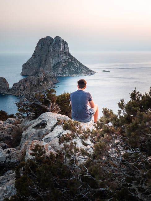 坐在岩石上的男人的照片 · 免费素材图片