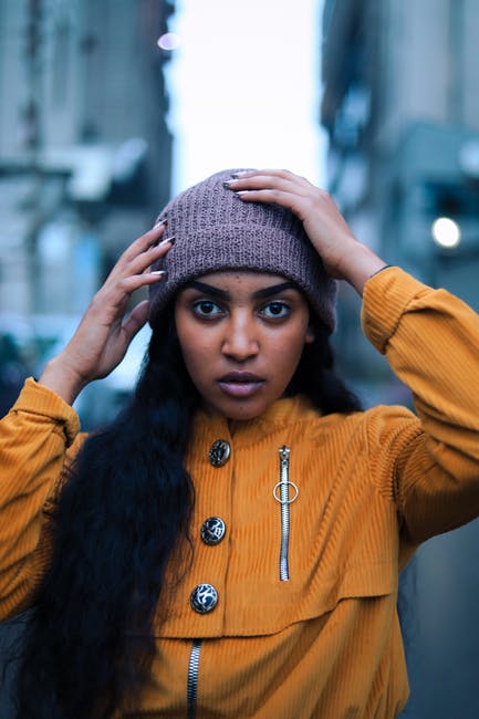 有关(頂部有小羊毛球的)羊毛帽子, 垂直拍摄, 女人的免费素材图片