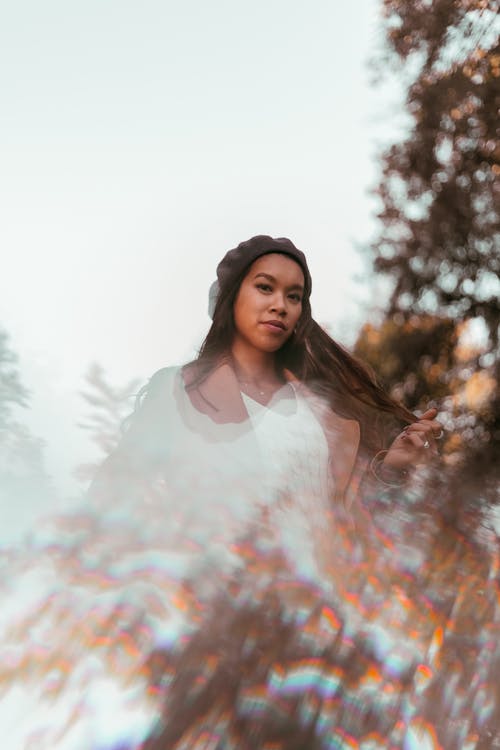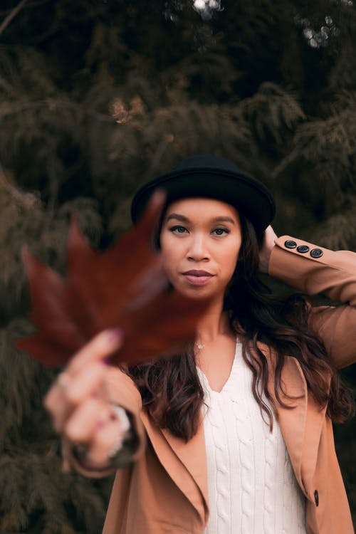 女人穿着棕色夹克和帽子 · 免费素材图片