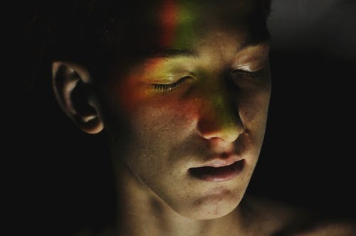 站在粉红色的窗帘与窗口旁边的女人 · 免费素材图片