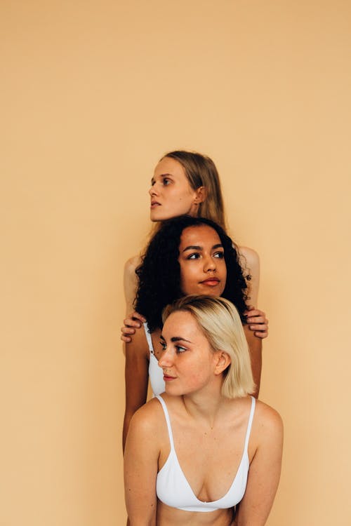 3名穿着白色和棕色比基尼的女人合影 · 免费素材图片