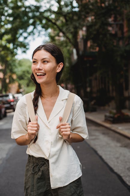 站立在晴朗的镇街道上的快乐的种族妇女 · 免费素材图片