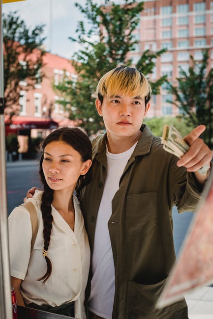 亚洲小两口在街边咖啡馆点菜 · 免费素材图片