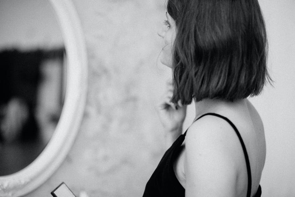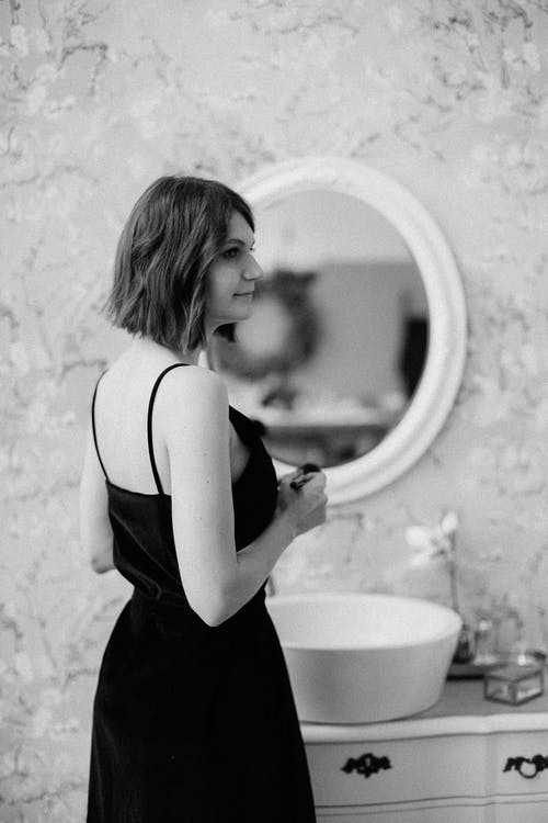 女人站在镜子前的灰度照片 · 免费素材图片