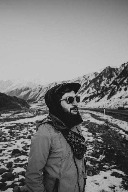 穿着米色外套和戴帽的男人被雪覆盖的山脉 · 免费素材图片