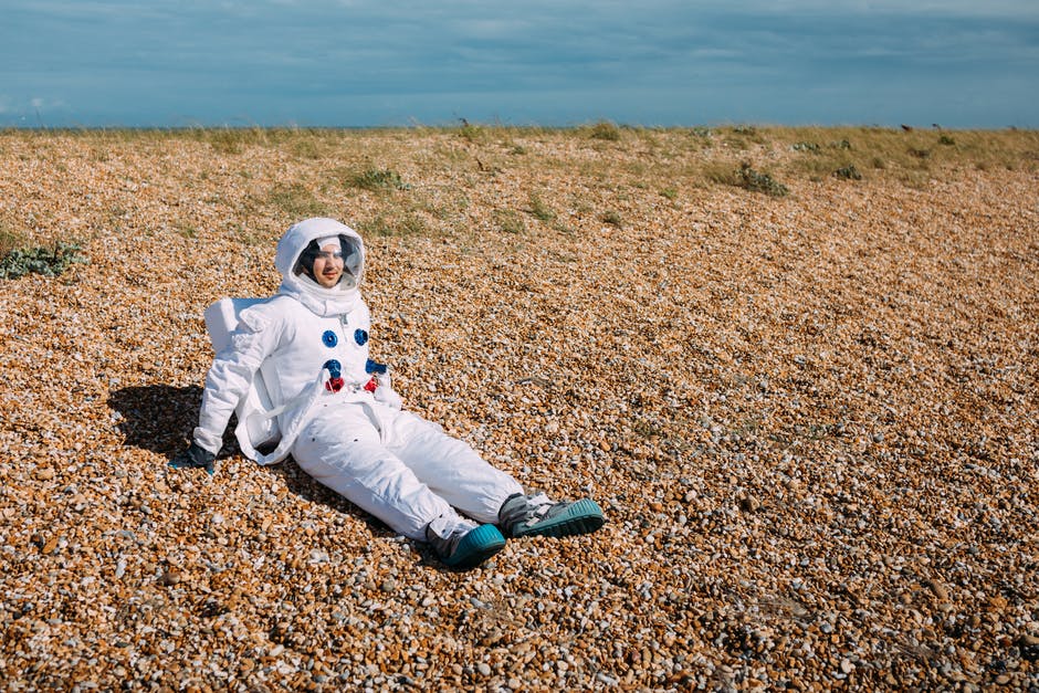 在沙漠中间穿着太空服的人 · 免费素材图片
