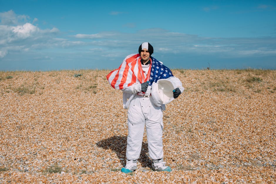 太空服的男人,在他的肩膀上的标志 · 免费素材图片