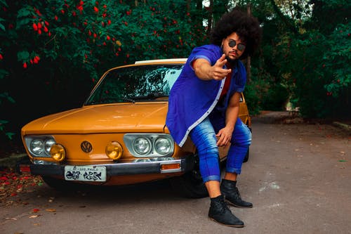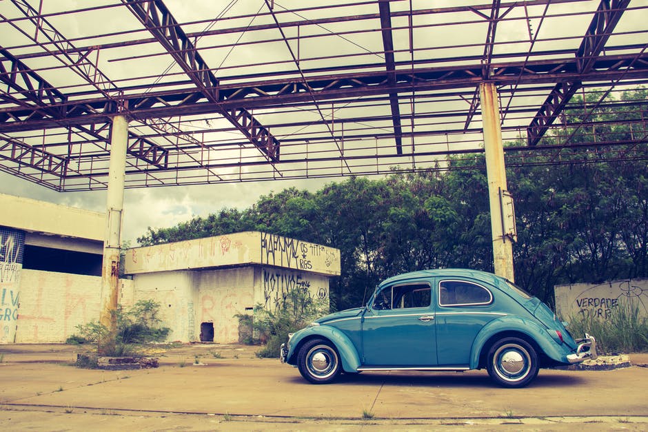 大厦前的蓝色大众甲壳虫 · 免费素材图片