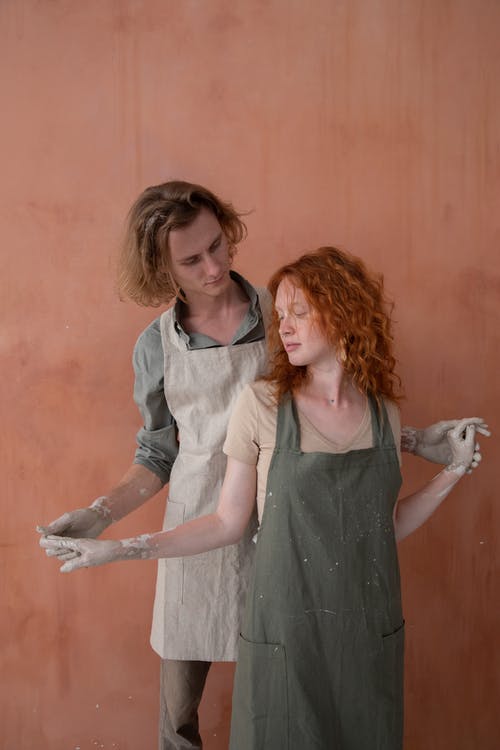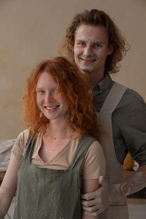 幸福的夫妇,在粘土在工作室里爱抚 · 免费素材图片