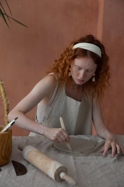 集中在陶器中的女人切割粘土板 · 免费素材图片
