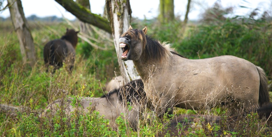 三匹棕色的马在森林里 · 免费素材图片