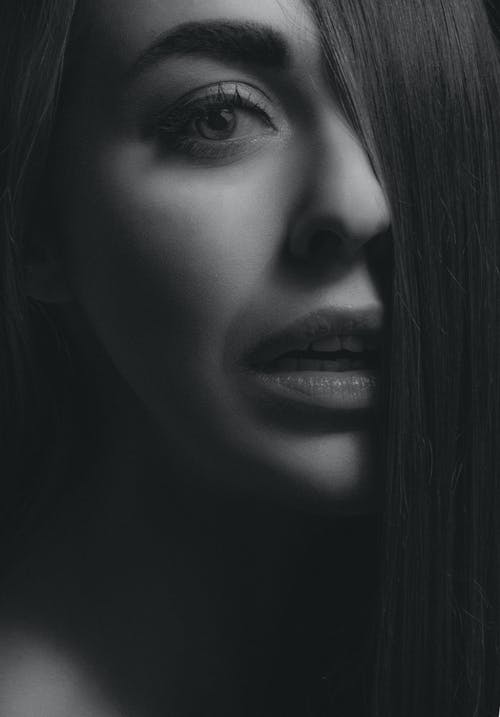 有关半张脸, 单色, 垂直拍摄的免费素材图片